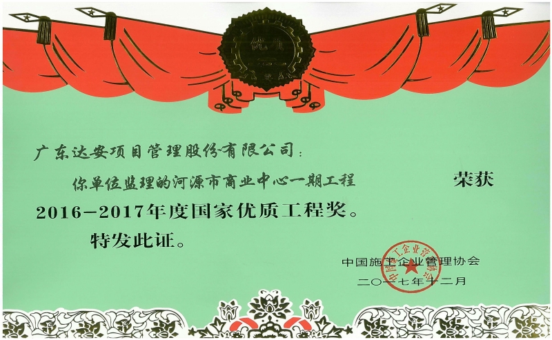 國家優(yōu)質(zhì)工程獎(jiǎng)-河源市商業(yè)中心一期工程