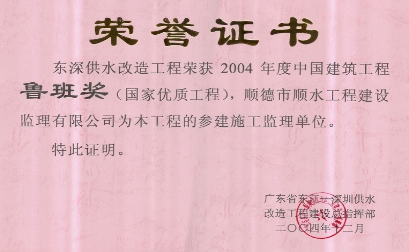 中國建筑工程魯班獎(jiǎng)(國家優(yōu)質(zhì)工程獎(jiǎng))-東深供水改造工程