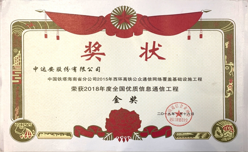 全國優(yōu)質(zhì)信息通信工程金獎(jiǎng)-中國鐵塔海南省分公司2015年西環(huán)高鐵公眾通信網(wǎng)絡(luò)覆蓋基礎(chǔ)設(shè)施工程