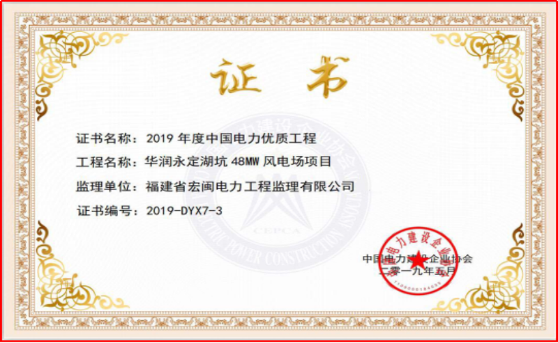 中國電力優(yōu)質(zhì)工程-華潤永定湖坑48MW風(fēng)電項(xiàng)目