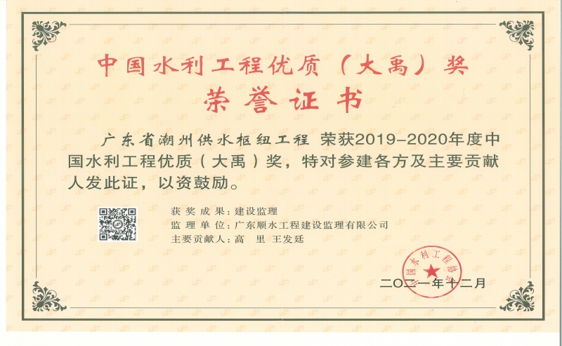 中國水利工程優(yōu)質(zhì)(大禹)獎(jiǎng)-潮州供水樞紐項(xiàng)目