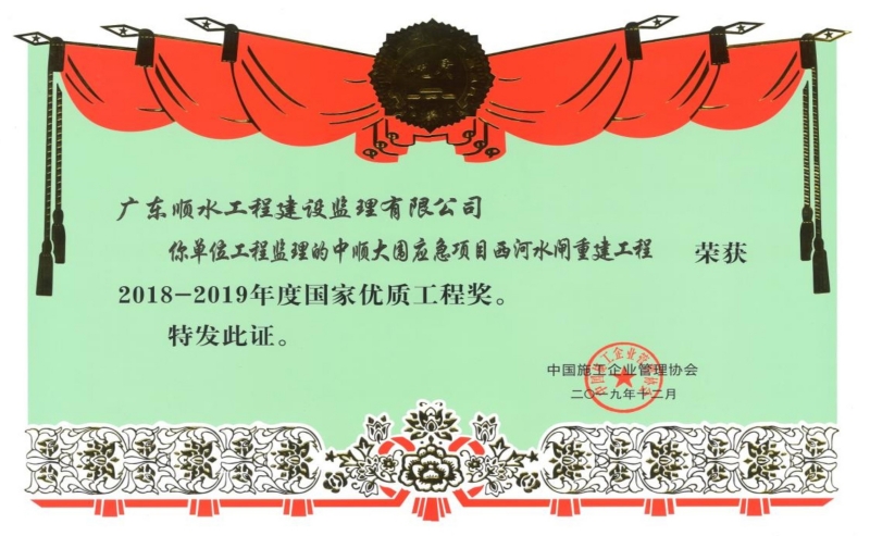 國家優(yōu)質(zhì)工程獎(jiǎng)-中順大圍應(yīng)急項(xiàng)目西河水閘重建工程