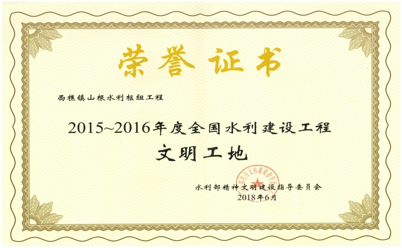 全國水利建設(shè)工程文明工地-西樵鎮(zhèn)山根水利樞紐工程
