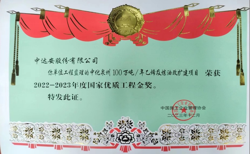 國家優(yōu)質(zhì)工程金獎(jiǎng)-中化泉州 100萬噸年乙烯及煉油改擴(kuò)建項(xiàng)目