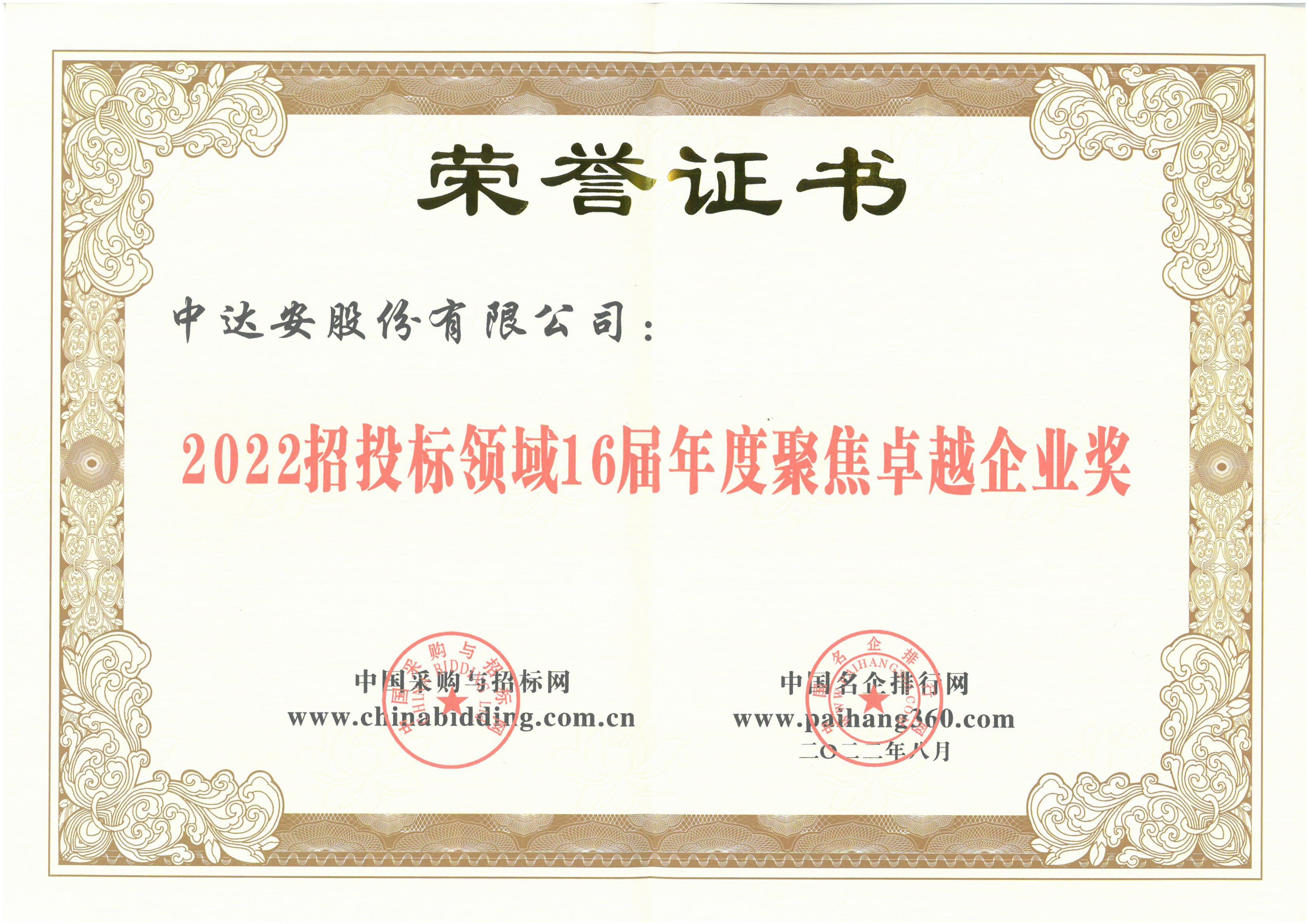 2022招投標(biāo)領(lǐng)域16屆年度聚焦卓越企業(yè)獎